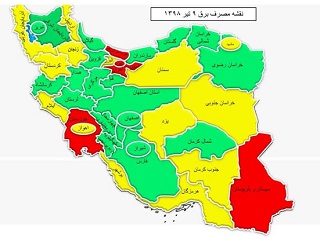 به گزارش ایسنا، پایش نقشه مذکور نشان می‌دهد که امروز، نهم تیرماه، مصرف برق ایران روند صعودی داشته و تعداد استان‌هایی که مصرف متعادلی داشته‌اند، نسبت به هفته قبل کم‌تر شده است. در این راستا و بنا بر گزارش شرکت توانیر امروز استان‌های سمنان، خراسان جنوبی، یزد، مناطق جنوبی استان کرمان، هرمزگان، بوشهر، ایلام، البرز، زنجان، اردبیل، آذربایجان غربی و کردستان و کلانشهرهای مشهد و اهواز در منطقه زرد قرار دارند. رنگ زرد نشان دهنده مناطقی است که مصرف برق آن‌ها رو به افزایش است و مشترکان در این مناطق می‌توانند با کاهش حداقل ۵ درصد از میزان برق مصرفی خود، در وضعیت سبز و پایدار قرار گیرند.