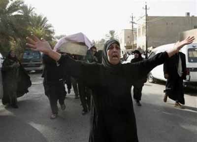 مادر عراقي در غم مرگ كودكش در حمله هوايي نيروهاي امريكايي به محله شيعهنشين شهر صدر بغداد