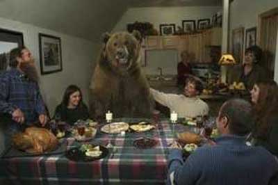 خرس گريزلي 4 سال و نيمه بر سر ميز شام روز شكرگزاري يك خانواده در شهر بوزمن در ايالت مونتانا