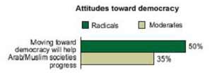 50 درصد رادیکال ها و 35 درصد معتدل ها، ایجاد دموکراسی را برای کشور خود مفید ارزیابی می کنند.
