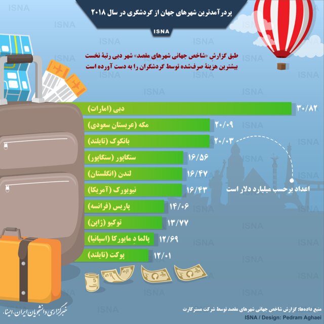 پردرآمدترین شهرهای جهان از گردشگری در سال 2018 (اینفوگرافی)