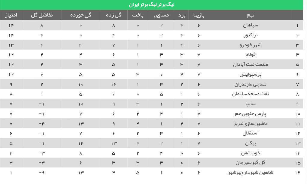 جدول رده بندی لیگ برتر
