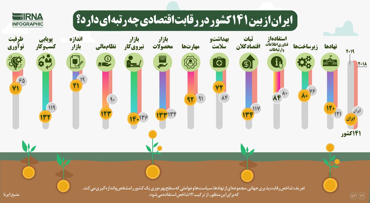 جایگاه ایران در رقابت اقتصادی با ۱۴۱ کشورجهان (اینفوگرافی)