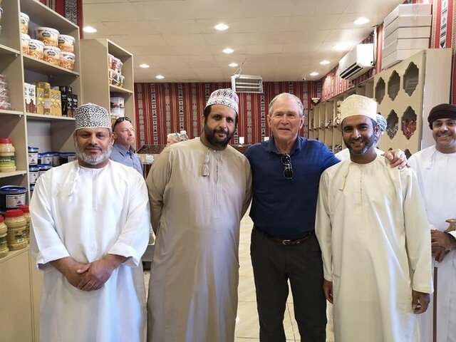 به نوشته این روزنامه عمانی، بوش همچنین از بازار خرمافروشان عمانی بازدید کرد و با بسیار در آنجا عکس یادگاری گرفت.
