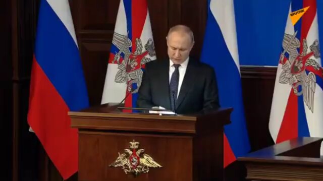 ولادیمیر پوتین، رئیسجمهوری روسیه در سخنانی در هیات وزارت دفاع روسیه درباره فعالیتهای نظامی مختلف این کشور در سال ۲۰۱۹ سخنرانی کرد. همچنین انتظار میرود رئیس کشور روسیه اهداف جدیدی برای ارتش در سال آتی میلادی تعیین کرده و حوزههای توسعه که برای ارتش و نیروی دریایی طراحی شده است، اعلام کند.