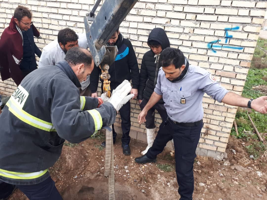 یک گاو ۲۵۰ کیلویی از عمق چاه چهار متری توسط آتش نشانان ایستگاه مرکزی دزفول (خوزستان) نجات یافت.
