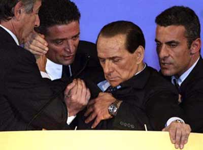 برلوسكوني در حال سخنراني براي طرفدارانش از حال رفت