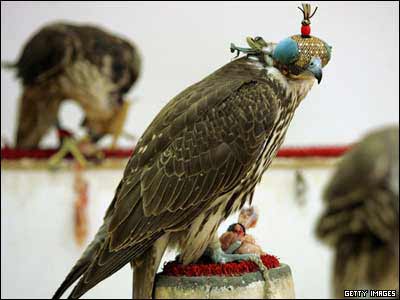 یک شاهین شکاری که به قیمتی بیش از پنج هزار دلار در دوحه قطر به فروش گذاشته شده است.