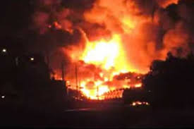 این قطار که نفت خام منتقل میکرده به دلایل نامعلوم از ریل خارج شده است. پلیس در حال بررسی علل انفجار و آتشسوزی است.