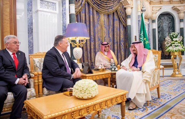 پمپئو پس از دیدار با پادشاه سعودی به یک پایگاه هوایی نظامی این کشور رفت که تقریبا ۲۵۰۰ تن از نظامیان آمریکایی برای آنچه پاسخ به تهدیدهای ایران عنوان شده است، در آنجا مستقر هستند.
