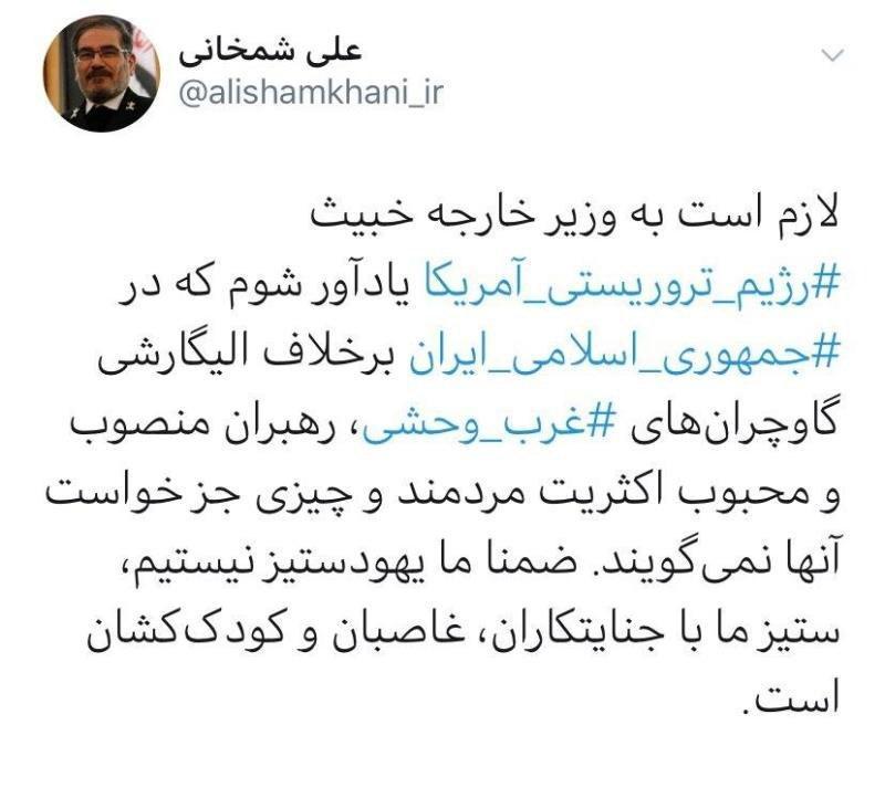 شمخانی: ما یهودستیز نیستیم، ستیز ما با جنایتکاران، غاصبان و کودک‌کشان است