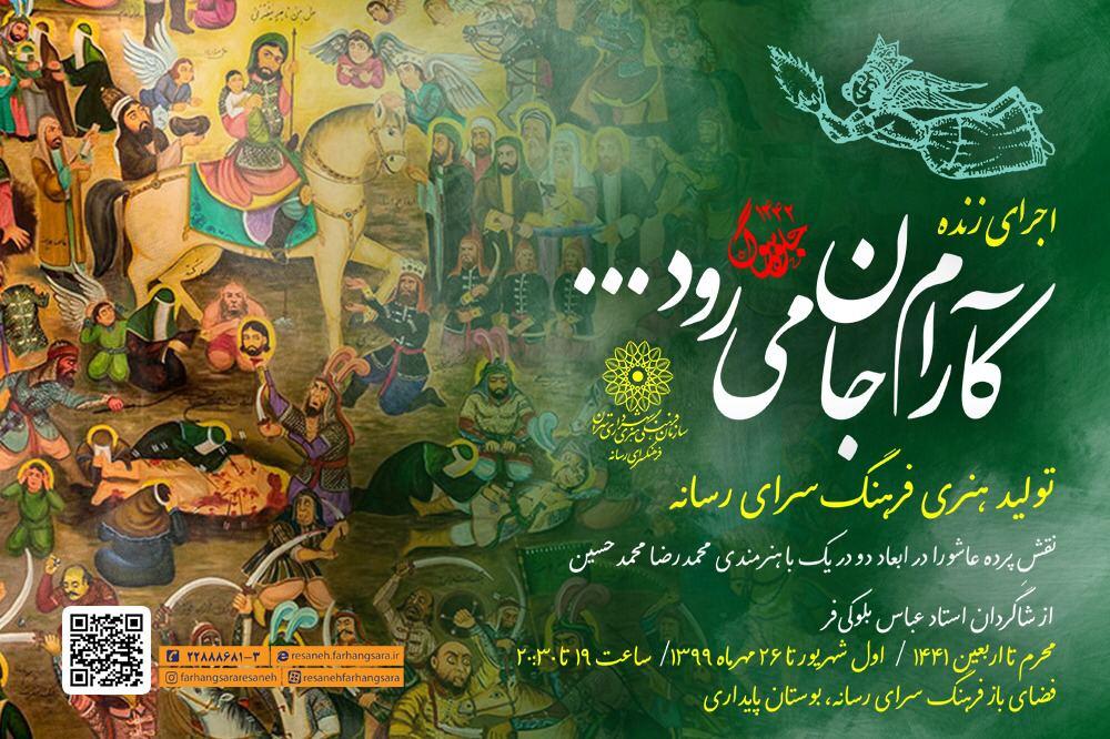 به گزارش روابط عمومی فرهنگسرای رسانه، محمدرضا محمدحسین از هنرمندان بهنام نقاشی قهوهخانهای، تابلوی عاشورایی «کآرام جان میرود» را از آغاز محرم تا روز اربعینحسینی در فضای باز فرهنگسرای رسانه به صورت زنده در برابر چشمان عزاداران حسینی ترسیم میکند.