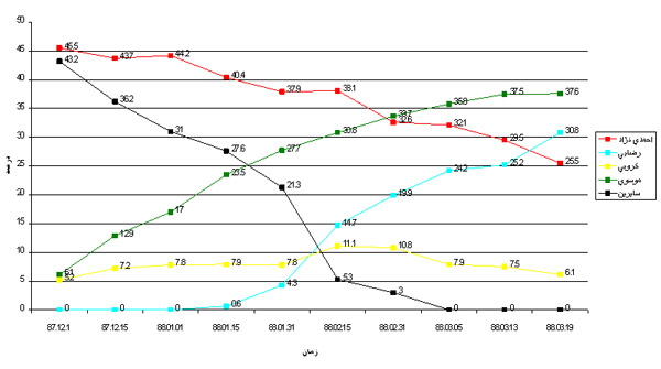 گفتنی است، طبیعتاً چنین نظرسنجیهایی احتمال و ضریب خطای چند درصدی دارند، اما با توجه به اینکه این نظرسنجی ترکیبی از چند نظرسنجی اینترنتی و میدانی است، به نظر میرسد که بتواند تا اندازهای فضای انتخاباتی را به ویژه در بازههای زمانی مشخص تبیین و تحلیل کند و با نشان دادن شیب صعودی یا نزولی هر یک از نامزدها، میزان تأثیرگذاری برنامههای تبلیغاتی آنان را نشان دهد.