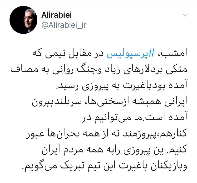 واکنش سخنگوی دولت به صعود پرسپولیس به فینال لیگ قهرمانان آسیا: ما می‌توانیم در کنارهم، پیروزمندانه از همه بحران‌ها عبور کنیم