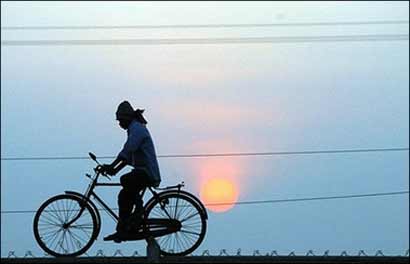 كارگر هندي در ساعت اوليه صبح مشغول رفتن به سر كار
