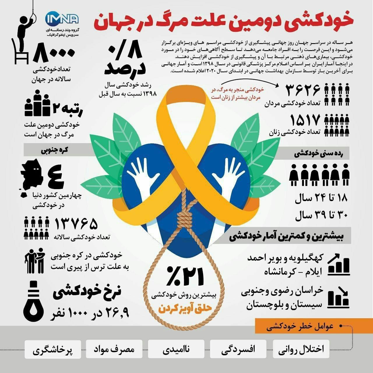 نسبت آمار خودکشی مردان به زنان در ایران (اینفوگرافی)