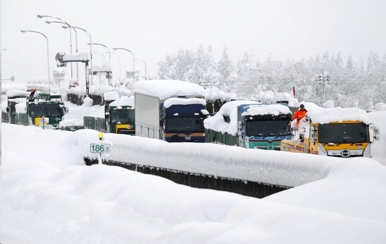 خبرگزاری کیودو از ترافیک در نقاط مختلف بزرگراه کنتسو خبر داده و گفته مسدود شدن این جاده پس از آن صورت گرفت که یک تریلر چهارشنبه شب در برف گیر کرد.
