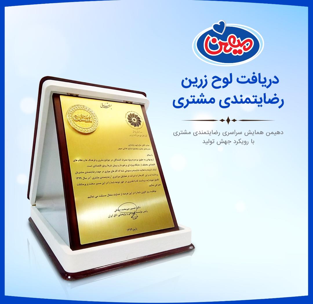 در دهمین همایش سراسری رضایتمندی مشتری، از مجتمع صنایع غذایی میهن، به عنوان شرکت برگزیده مشتری مداری تجلیل و تندیس ویژه این جشنواره به شرکت اهدا شد.