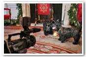 آقا و خانم بارنی از نژاد اسکاتلندی هستند. بارنی متولد 30 سپتامبر 2000 و الان 6 سالش است. او کار خود را در ریاست جمهوری از سال اول تولد خود آغاز کرد. خانم بیزلی نیز هدیه روز تولد جرج بوش به لورا بوش است و از سال گذشته به عضویت خانواده بوش در کاخ سفید در آمده است. بارنی و بیزلی علاوه بر همراهی بوش در بعضی سفرهای رسمی و غیر رسمی، همه ساله در فیلم هایی تحت عنوان بارنی کم نیز شرکت می کنند. بوش در این فیلم ها - که برای مخاطبان خاص و کودکان تهیه می شود - سعی می کند ، پیام های خاصی را به مردم آمریکا منتقل کند.