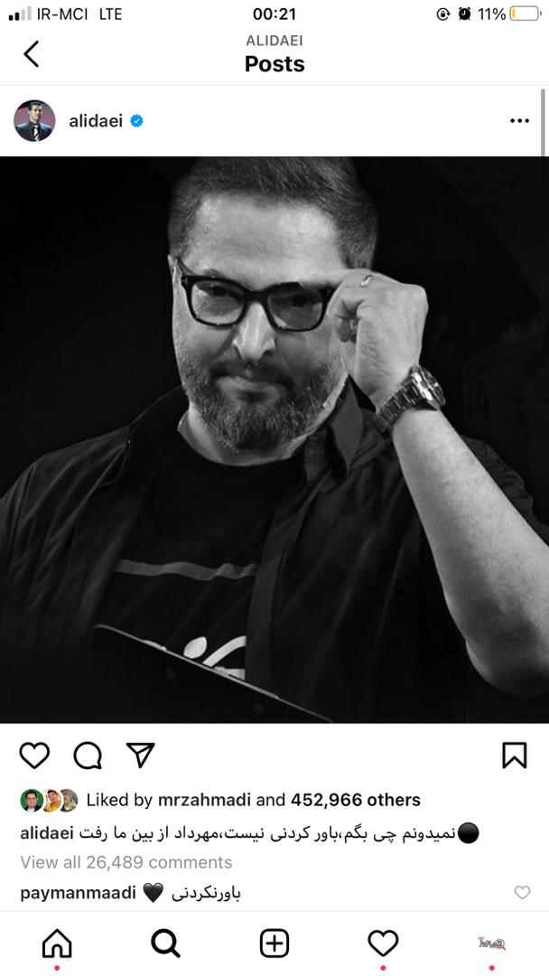پست اینستاگرامی علی دایی درباره درگذشت مهرداد میناوند (عکس)