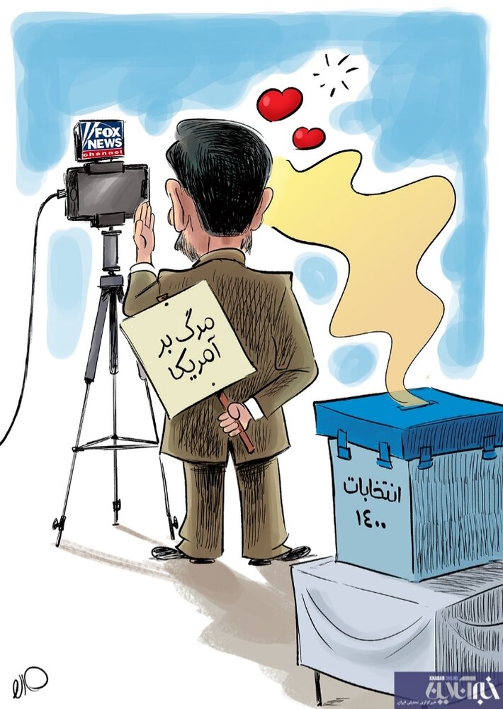 محمود احمدی‌نژاد در مصاحبه با فاکس نیوز گفته "اگر ملّت ایران و آمریکا در کنار هم قرار بگیرند یک انرژی عظیمی در دنیا ایجاد می‌شود!" موضوعی که سوژه کارتونی از مهدی عزیزی در خبرآنلاین شد.