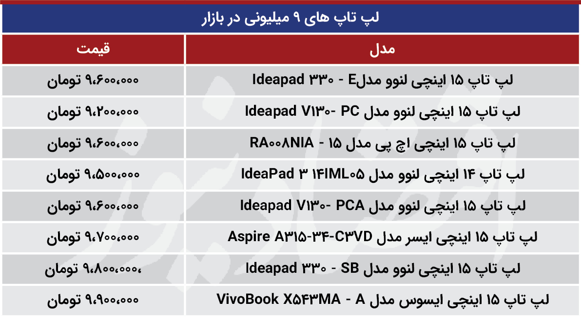 برای خرید لپ تاپ با بودجه 9 میلیون تومان تقریبا انتخاب های محدودی دارید؛ اما 8 لپ تاپی که می توانید با این مبلغ خریداری کنید در ادامه لیست شده است؛