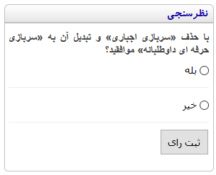 نظرسنجی: با حذف «سربازی اجباری» و تبدیل آن به «سربازی حرفه ای داوطلبانه» موافقید؟