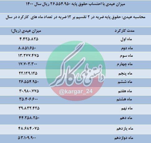 میزان عیدی کارگران از یک تا 12 ماه برای سال 1400