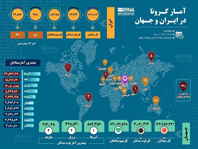 آمار کرونا در ایران و جهان (اینفوگرافیک)