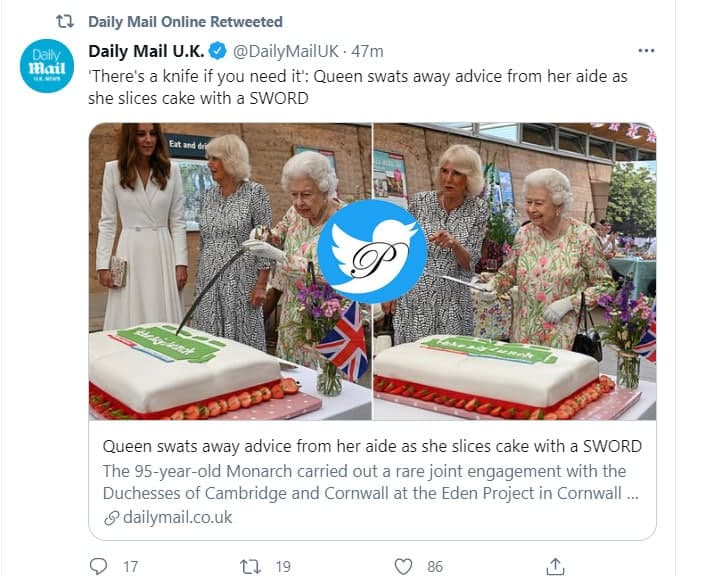 ملکه الیزابت دوم 95 ساله در کورن وال و در خلال اجلاس G7 و دیدار با بایدن و همسرش، کیکی را با شمشیر برید.