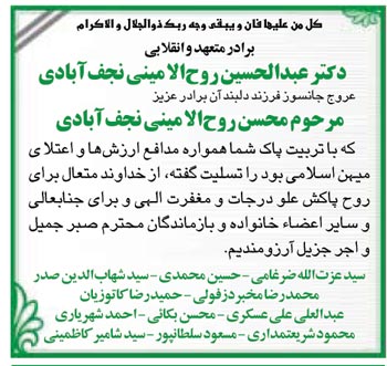 اعلامیه مجلس ترحیم مرحوم محسن روح الامینی