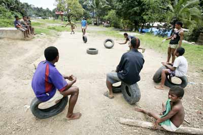 کودکان حاشیه نشین شهر "سووا" واقع در فیجی، از بازی با تایرهای فرسوده منع شدند.