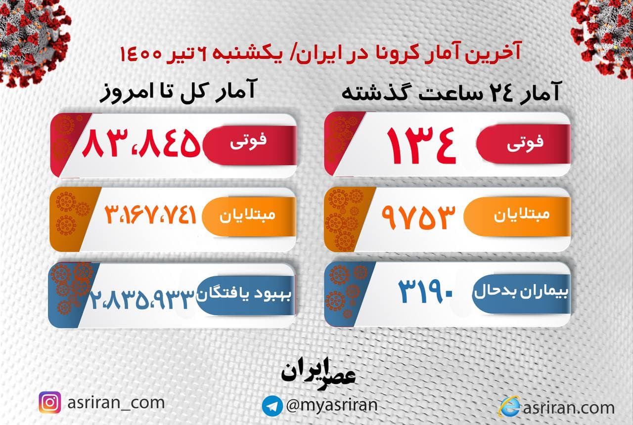 آخرین آمار کرونا در ایران یکشنبه ۶ تیر (اینفوگرافیک)