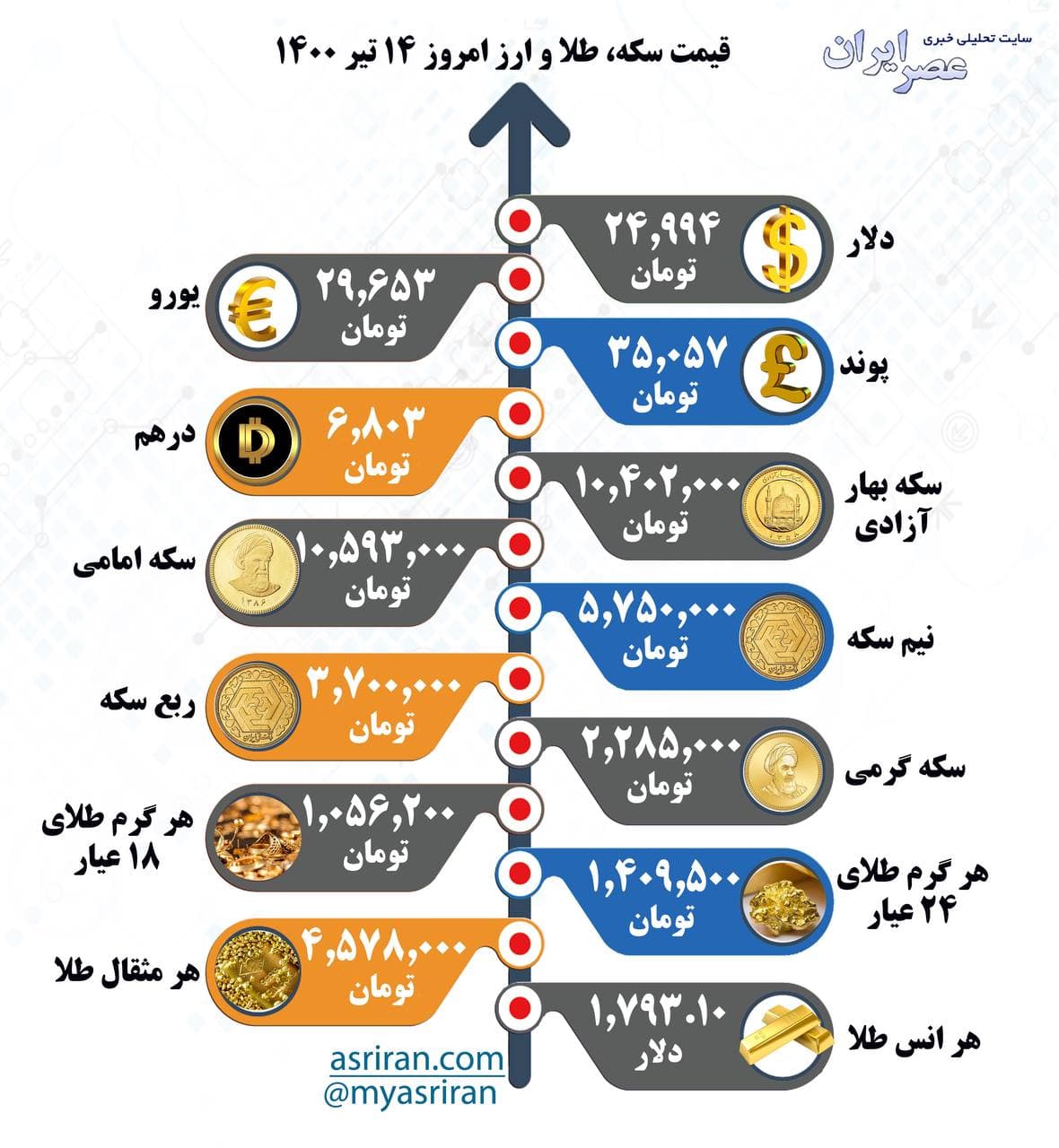 قیمت سکه، طلا و ارز دوشنبه ۱۴ تیر (اینفنوگرافیک)