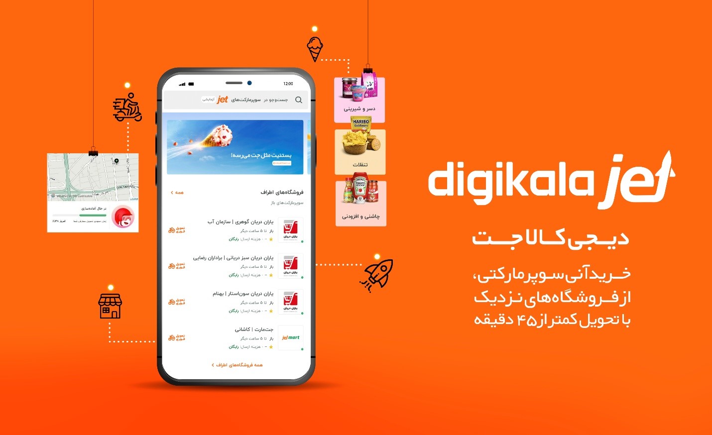 محصول جدید گروه دیجیکالا با عنوان «دیجیکالا جت» با هدف ارسال رایگان و سریع سفارشهای سوپرمارکتی (کمتر از ۴۵ دقیقه) آغاز به کار کرد.