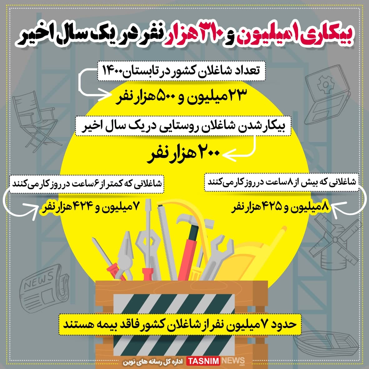 بیکاری ۱ میلیون و ۳۱۰ هزار نفر در یک سال اخیر