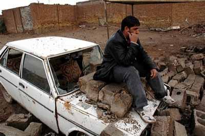 تصوير مرد عراقي كه در انفجار بمب خانهاش ويران شده