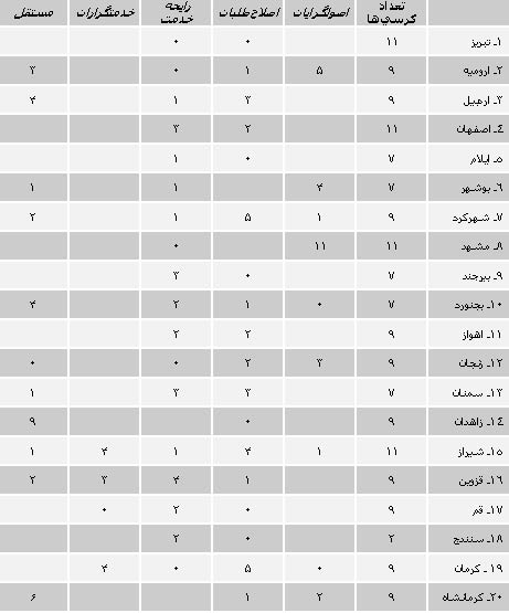 جدول کامل نتایج انتخابات شوراهای مراکز استان به تفکیک گرو ه های سیاسی