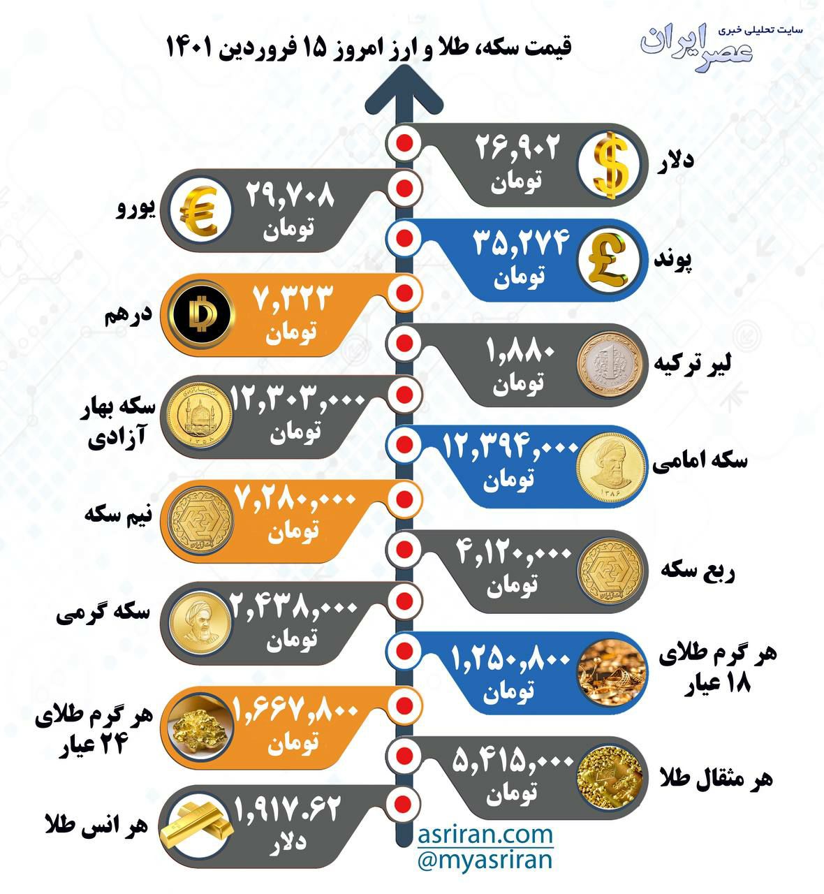 قیمت سکه، طلا و ارز امروز ۱۵ فروردین ۱۴۰۱