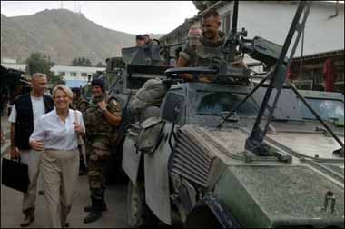 بازديد وزير دفاع فرانسه از نيروهاي کشورش در افغانستان