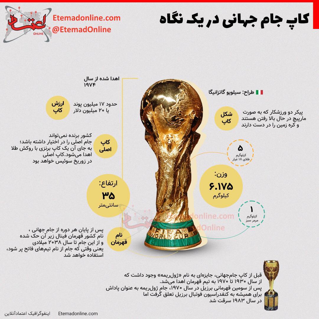 پس از پایان هر دوره از جام جهانی، نام کشور قهرمان جام زیر کاپ طلا حک می‌شود. از این جام تا سال 2038 میلادی یعنی وقتی که جام از نام تیم‌های فاتح پر شود، استفاده خواهد شد./منبع: اعتماد آنلاین