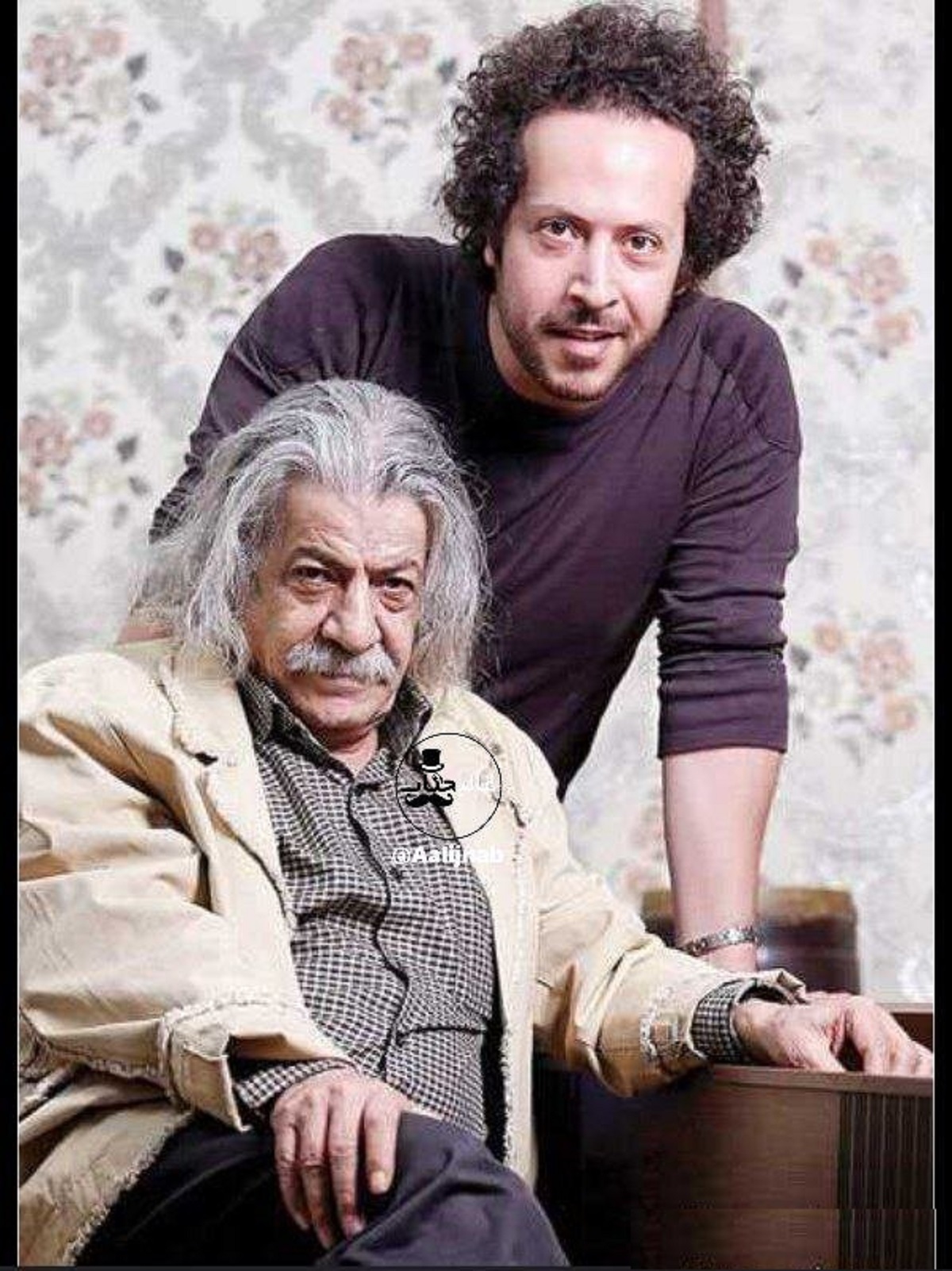 تصویری از صدرالدین حجازی، بازیگر پیشکسوت در کنار پسرش سینا حجازی، خواننده معروف که در فضای مجازی بازنشر شده است را ببینید.